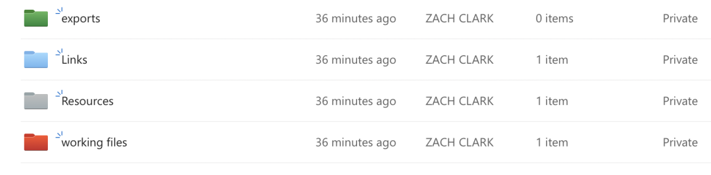 For this session I worked on My double page spread and the work around it I made files to organize all my work one file named “Graphic Design Fundamentals 2025” with four files inside. One for links with a word document containing the links for all of my resources including photos and fonts. A second for the resources in the work I have been doing. A third with the Exports of All My files. Finally a folder with all my working Files.