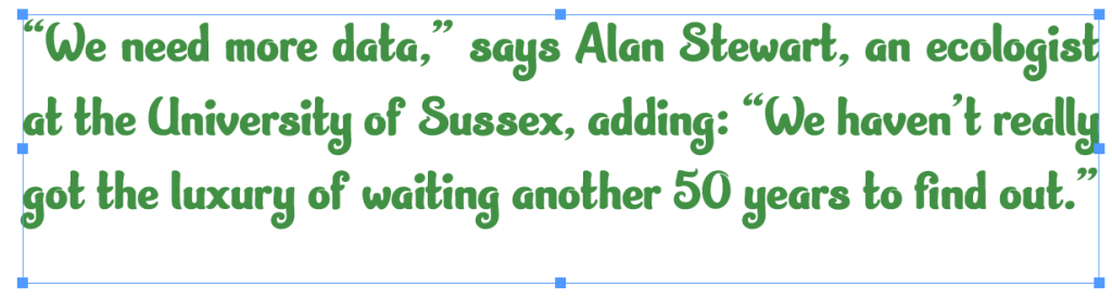 Once Creating my files I started to work on my Double page Spreads. I decided to work on the color scheme and ask for help with my current works for the spreads, I got the suggestion of varying some of my text and working on my cooler scheme Chaning my Quotes red to a green to fit more in the theme of nature as well as making the magazine be more friendly and actually legible to color blind people.
