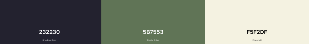 Once chasing these changes I started to work on my color scheme, I decided to have three colors fitting the theme and going together, I used the Colors website to generate colors and decided picking Three colors , Dusty Olive as the main colour for the spreads as I thought the green would match nicely with the natural theme in terms of fitting into nature. Egg Shell I thought that having a color that fits into the specific nature being in a large majority for birds Owls having the egg shell color fits into not only the story but another type of nature. Finally I had a shadow Grey to have a more neutral colour that I could fit into my spreads for the decks and alt text for my photo descriptions I wanted to have this color as it separates the features notably but when not concentration on them they are similar enough to not keep fixation.